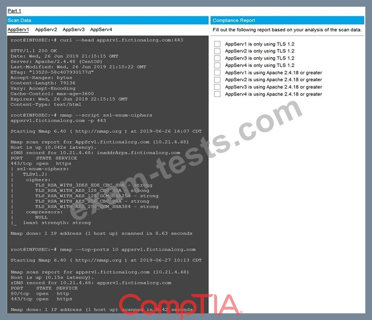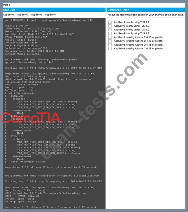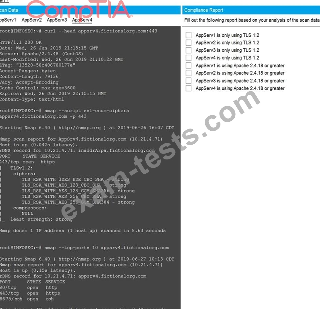 You are a cybersecurity analyst tasked with interpreting scan data from Company A's servers.
