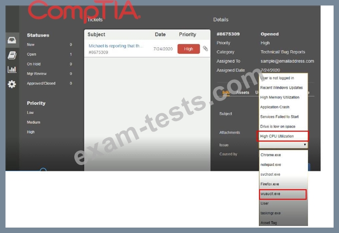 Click on me ticket to see the ticket details Additional content is available on tabs within the ticket First, select the appropriate issue from the drop-down menu. Then, select the MOST likely root cause from second drop-down menu If at any time you would like to bring back the initial state of the simulation, please click the Reset All button