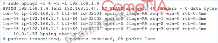 A security analyst is trying to determine if a host is active on a network. The analyst first attempts the following:
