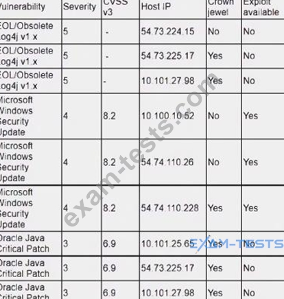 An analyst is reviewing a vulnerability report for a server environment with the following entries: