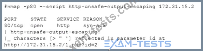 The security team reviews a web server for XSS and runs the following Nmap scan: