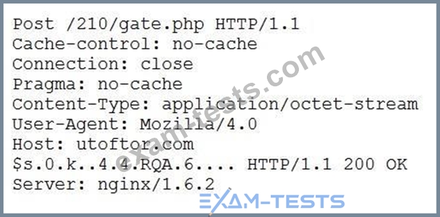 A security analyst discovers suspicious host activity while performing monitoring activities. The analyst pulls a packet capture for the activity and sees the following: