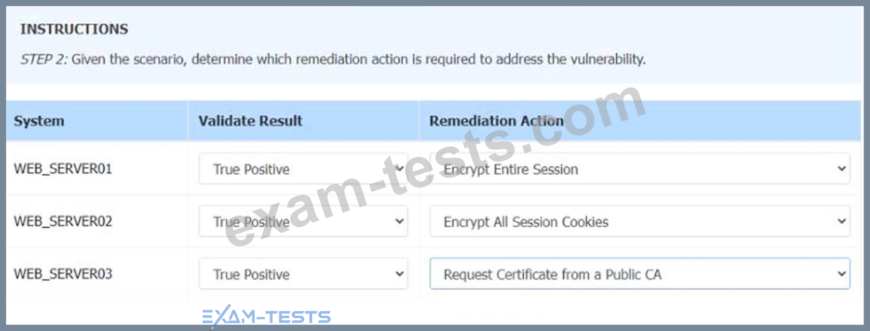 STEP 2: Given the Scenario, determine which remediation action is required to address the vulnerability.