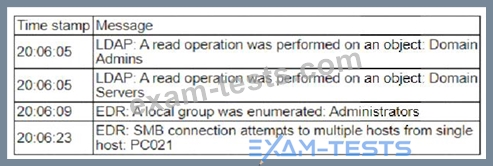 A security analyst is reviewing events that occurred during a possible compromise. The analyst obtains the following log: