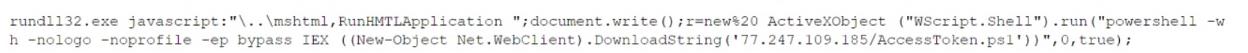 A SIEM alert is triggered based on execution of a suspicious one-liner on two workstations in the organization's environment. An analyst views the details of these events below: