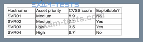 A security analyst is reviewing a recent vulnerability scan report for a new server infrastructure. The analyst would like to make the best use of time by resolving the most critical vulnerability first. The following information is provided: