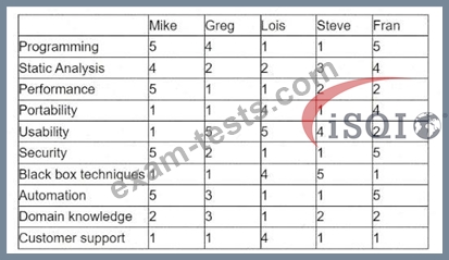 You have just conducted a skills assessment for your team. You decided to rate everyone from 1 to 5 in the skill areas as follows: