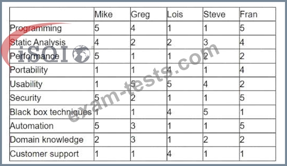 You have just conducted a skills assessment for your team. You decided to rate everyone from 1 to 5 in the skill areas as follows: