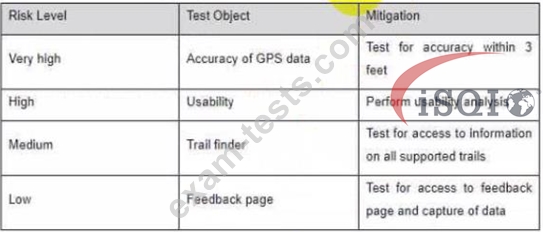 You are managing the test team that is testing a new mobile application that provides a "step-by-step' hiking guide Your risk assessment resulted in the following table: