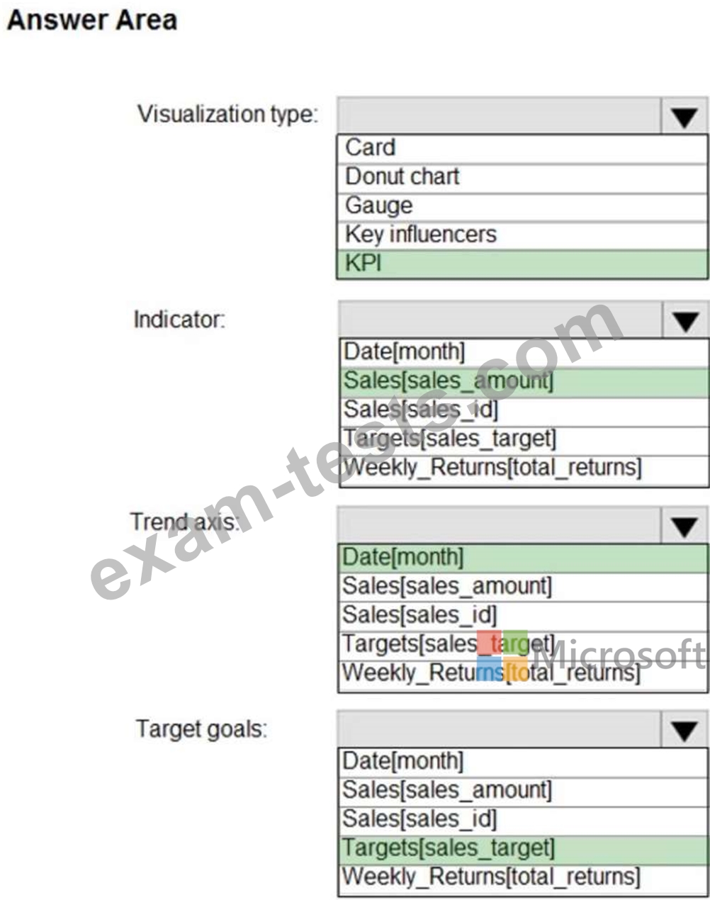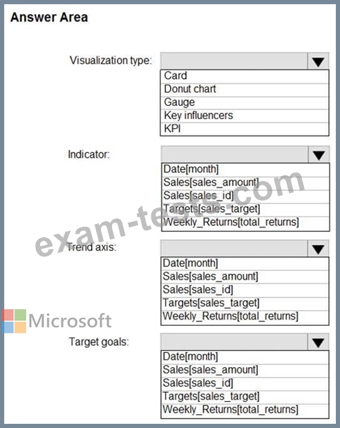 How should you create the visualization? To answer, select the appropriate options in the answer area. NOTE: Each correct selection is worth one point.