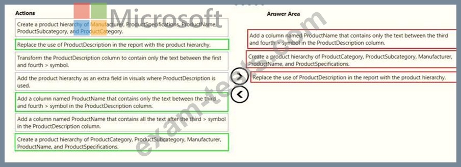 Warehouse managers report that it is difficult to use the report because the report uses only the product name in tables and visuals. The product name is contained within the ProductDescription column and is always the fourth value.