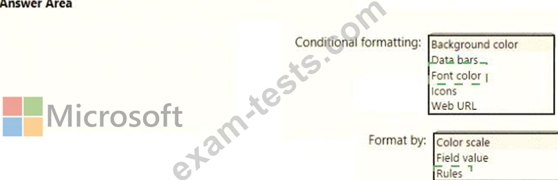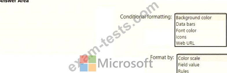 How should you configure the visual? To answer, select the appropriate options in the answer area.