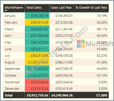 The indicator color for Total Sales will be based on % Growth to Last Year.