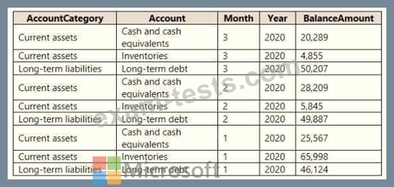 You plan to relate the balance sheet to a standard date table in Power Bl in a many-to-one relationship based on the last day of the month. At least one of the balance sheet reports in the quarterly reporting package must show the ending balances for the quarter, as well as for the previous quarter.