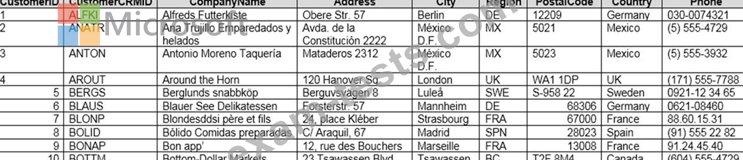 You use an R visual to produce a map of 500,000 customers. You include the values of CustomerID, Latitude, and Longitude in the fields sent to the visual. Each customer ID is unique.