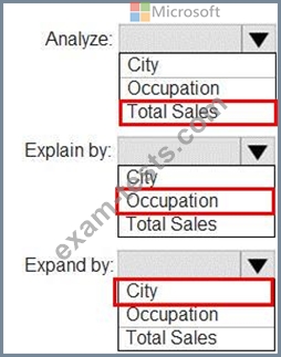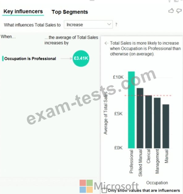You need to create a key influencers visualization as shown in the exhibit. (Click the Exhibit tab.)
