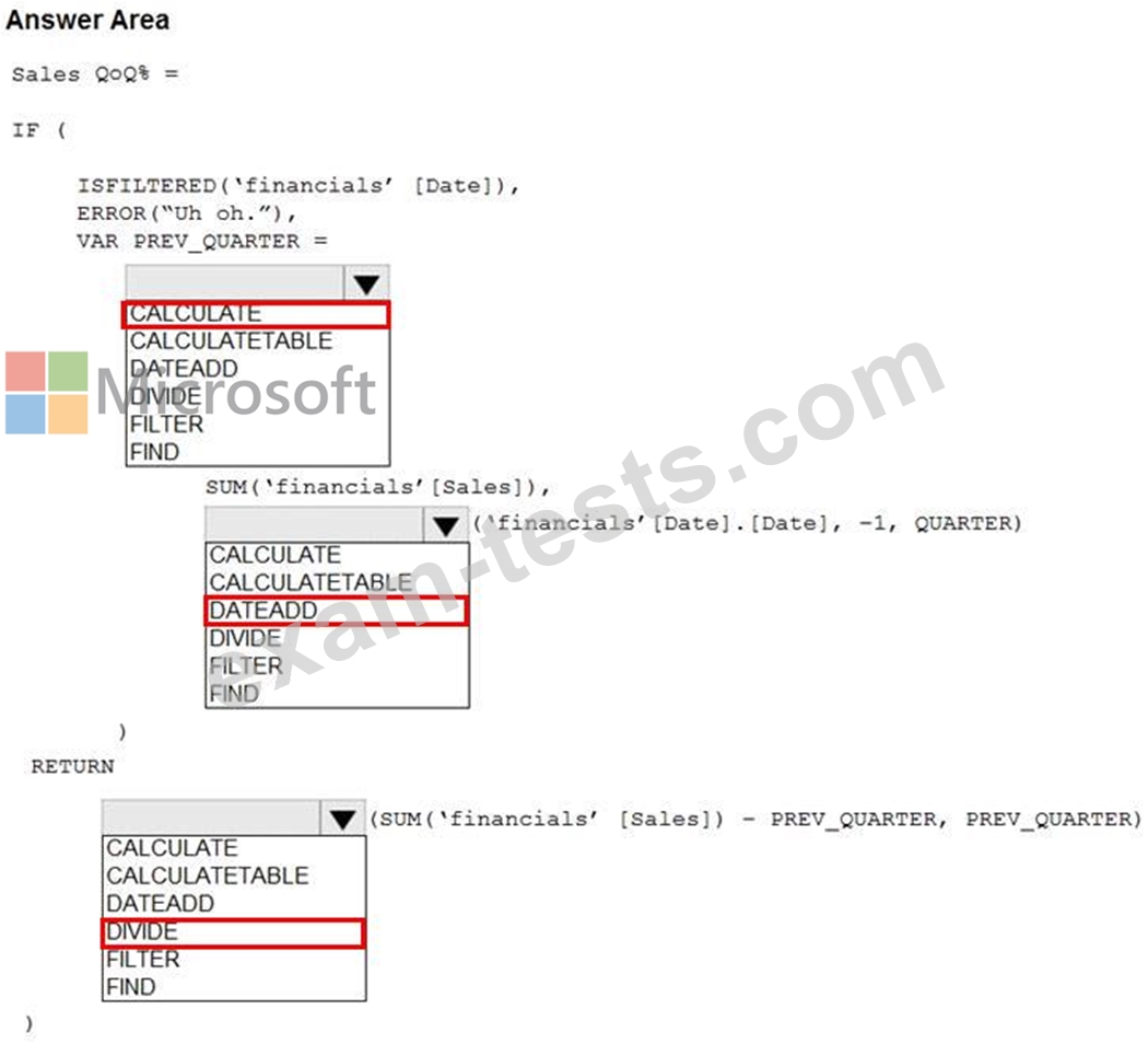 You are building a financial report by using Power BI.