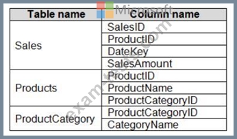 You are creating an analytics report that will consume data from the tables shown in the following table.