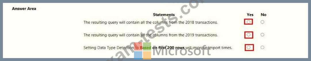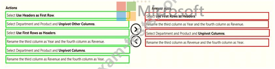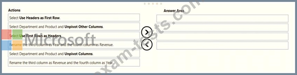 You need to transform the data to ensure that you can build the visuals. The solution must ensure that the columns are named appropriately for the data that they contain.