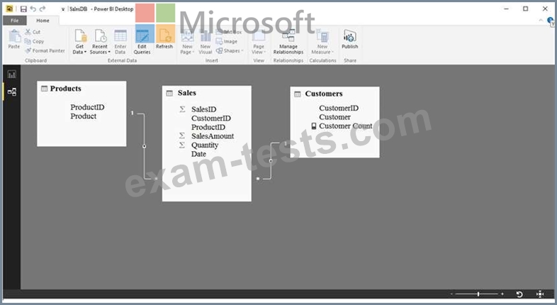 You have a Power BI Desktop project that has the model shown in the exhibit. (Click the Exhibit tab.)