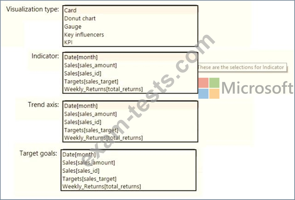 How should you create the visualization? To answer, select the appropriate options in the answer area.