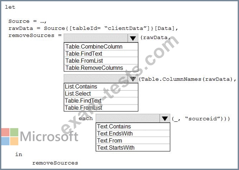 How should you complete the Power Query M code? To answer, select the appropriate options in the answer area.
