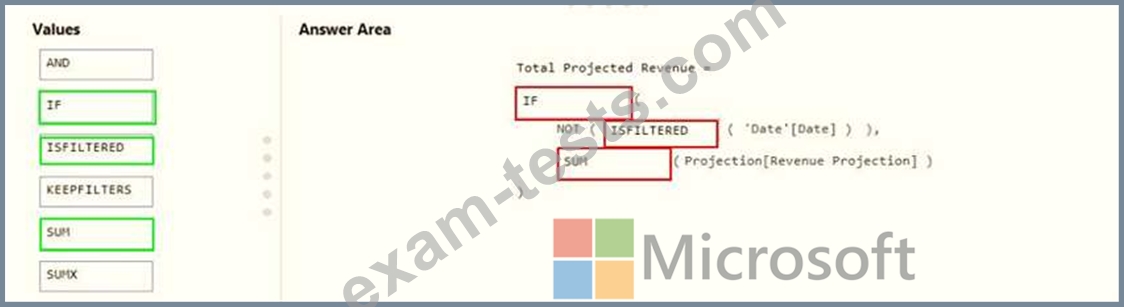 How should you complete the measure? To answer, drag the appropriate values to the correct targets. Each value may be used once, more than once, or not at all. You may need to drag the split bar between panes or scroll to view content.