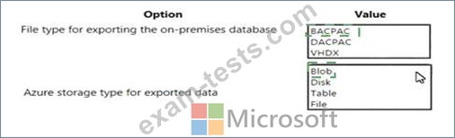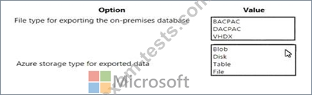 You manage an on-premises server named Server1 that has a database named Database1. The company purchases a new application that can access data from Azure SQL Database.