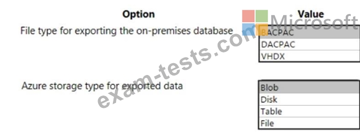 Which storage services should you recommend? To answer, select the appropriate configuration in the answer area.