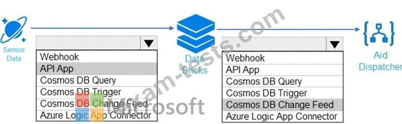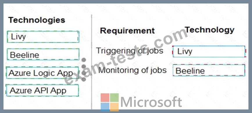 How should you design the pipeline? To answer, drag the appropriate services to the correct locations. Each service may be used once, more than once, or not at all. You may need to drag the split bar between panes or scroll to view content.