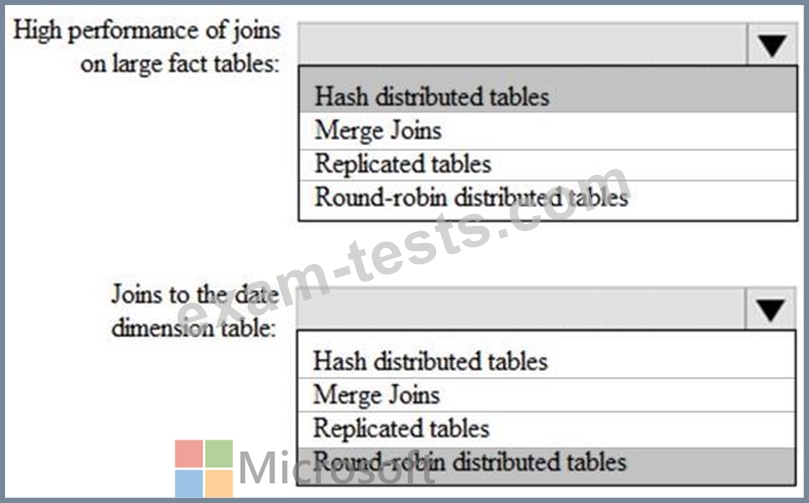 Which types of tables should you include in the design? To answer, select the appropriate options in the answer area.