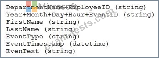 You are designing a solution that will use Azure Table storage. The solution will log records in the following entity.