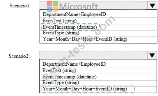 Which partition key should you use for each scenario? To answer, select the appropriate options in the answer area.