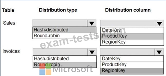 You plan to migrate the solution to use Azure SQL Data Warehouse. You need to ensure that the Azure-based solution optimizes query performance and minimizes processing skew.