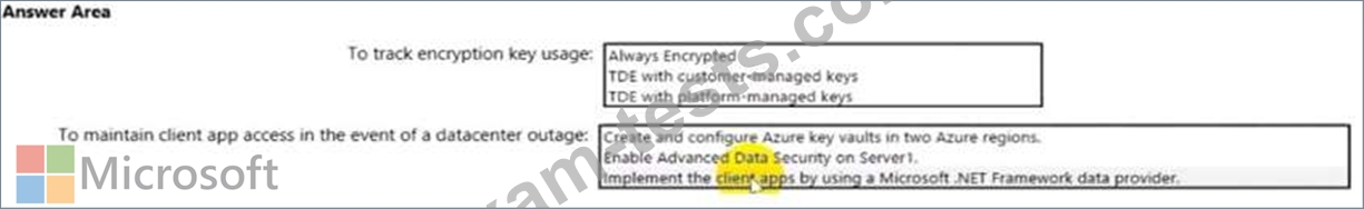 * Maintain the access of client apps to Pool1 in the event of an Azure datacenter outage that affects the availability of the encryption keys.