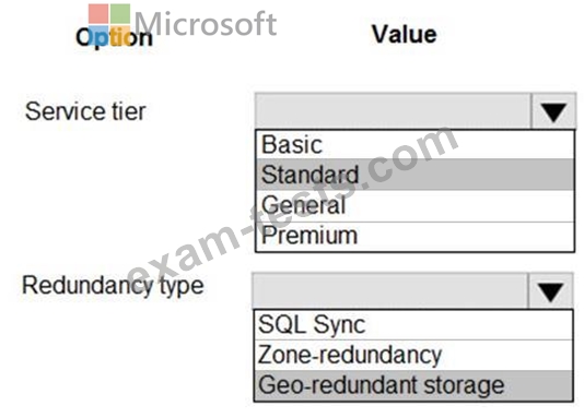 What should you recommend? To answer, select the appropriate values in the answer area.