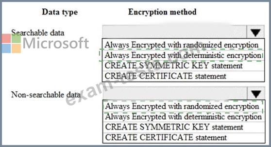 A company plans to use Azure SQL Database to support a line of business applications. The application will manage sensitive employee data.