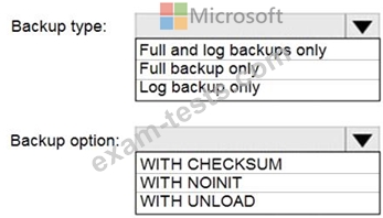 How should you configure the backup of DB1? To answer, select the appropriate options in the answer area.