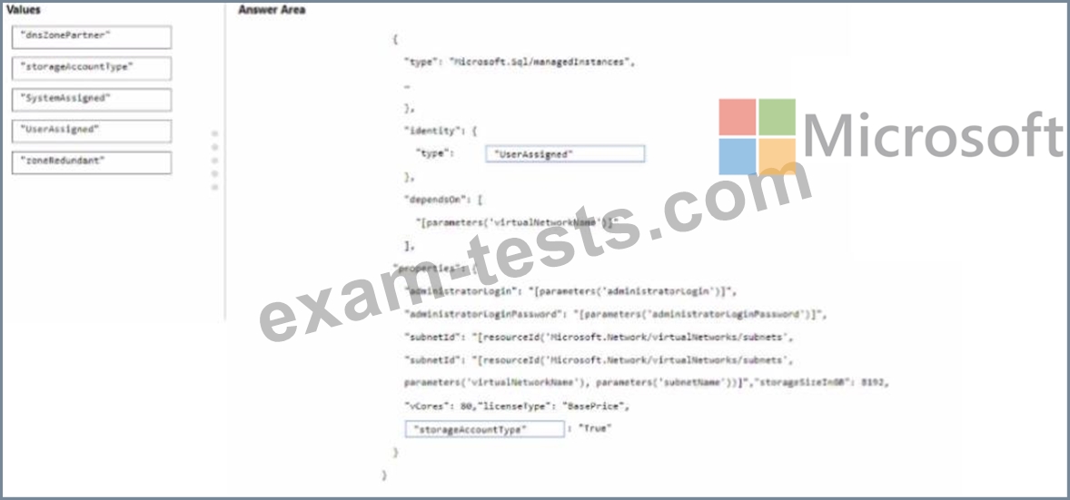 You need to deploy an Azure SQL managed instance by using an Azure Resource Manager (ARM) template.