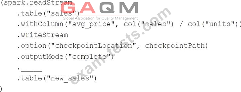 If the data engineer only wants the query to process all of the available data in as many batches as required, which of the following lines of code should the data engineer use to fill in the blank?