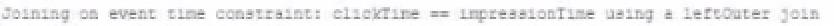 A data engineer wants to join a stream of advertisement impressions (when an ad was shown) with another stream of user clicks on advertisements to correlate when impression led to monitizable clicks.