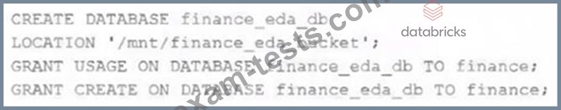 After the database was successfully created and permissions configured, a member of the finance team runs the following code: