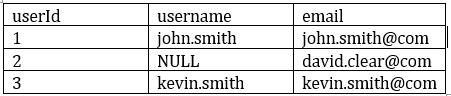 What could be the expected output of query SELECT COUNT (DISTINCT *) FROM user on this table