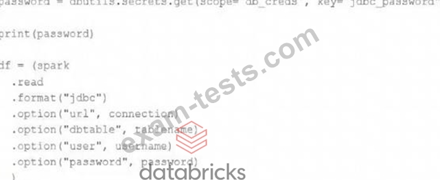 After testing the code with all Python variables being defined with strings, they upload the password to the secrets module and configure the correct permissions for the currently active user. They then modify their code to the following (leaving all other variables unchanged).