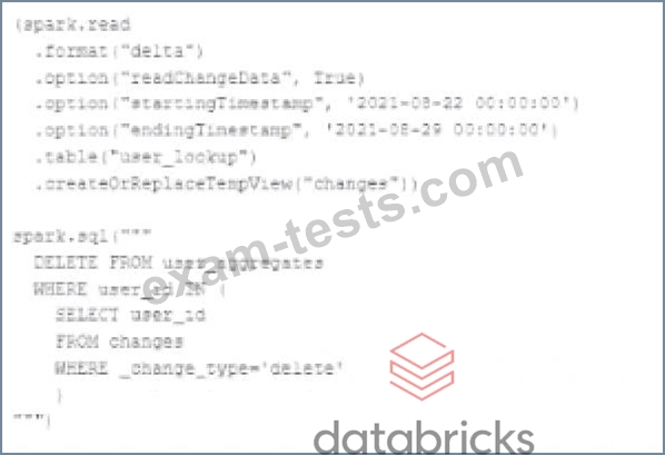 The data governance team is reviewing user for deleting records for compliance with GDPR. The following logic has been implemented to propagate deleted requests from the user_lookup table to the user aggregate table.