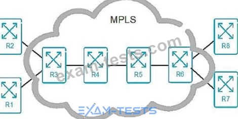 In the exhibit, which action is performed by router R3 for traffic arriving from router R2 towards router R4?