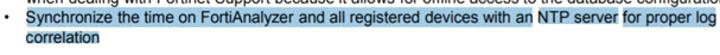 Why should you use an NTP server on FortiAnalyzer and all registered devices that log into FortiAnalyzer?