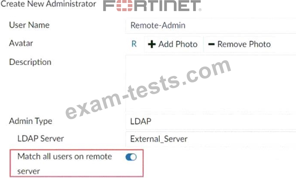 What are two effects of enabling the choice Match all users on remote server when configuring a new administrator? (Choose two.)