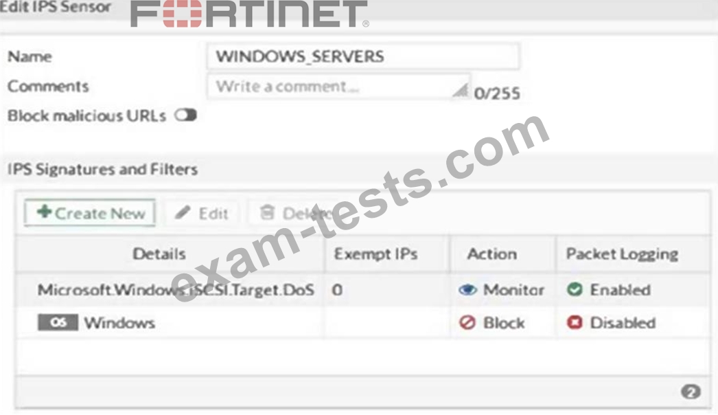 Refer to the exhibit, which shows the IPS sensor configuration.