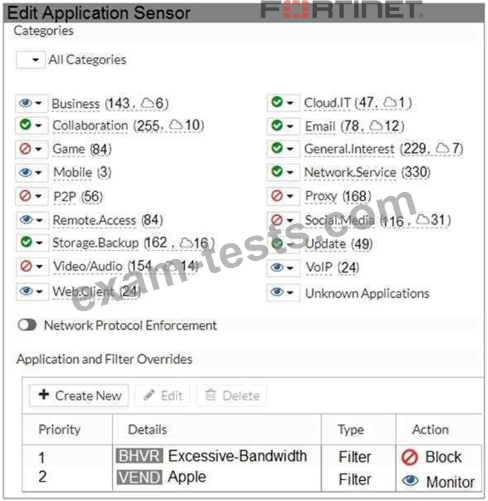 Refer to the exhibit to view the application control profile.